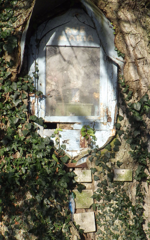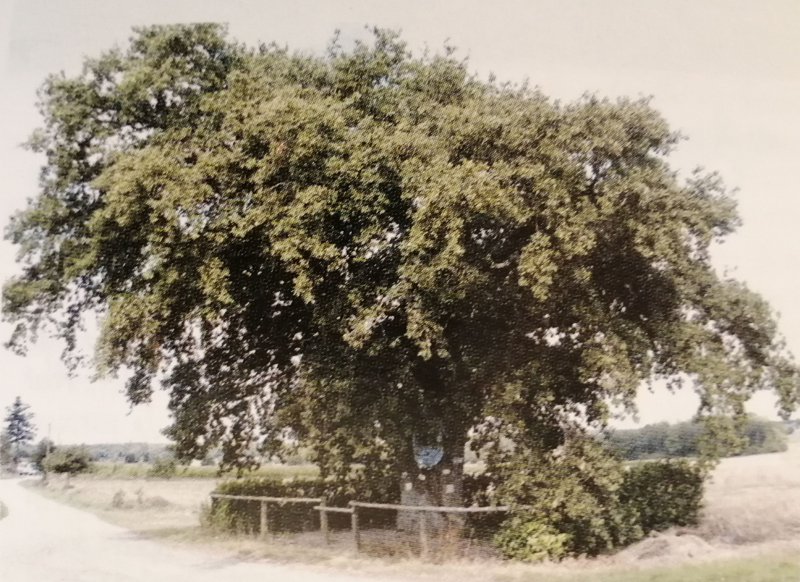 Au 19e siècle, une boite en bois abritant, une statue de la Vierge est accrochée au tronc. En 1897, le chêne